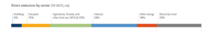 Global anthropogenic greenhouse gas emissions (in Gt CO2 equivalent) for the year 2019 by activity sector (Source: IPCC AR6 WG III_Chapter02).