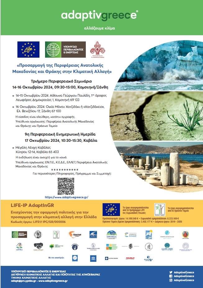 Ενημερωτικές και Επιμορφωτικές Δράσεις για την Προσαρμογή της Περιφέρειας Ανατολικής Μακεδονίας και Θράκης στην Κλιματική Αλλαγή, στο πλαίσιο του Έργου LIFE-IP AdaptInGR